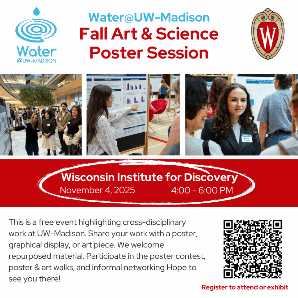 If you are faculty of staff, join us by formally affiliating! We’ll send you occasional notices of important events, networking opportunities, and you’ll get timely information that will help you connect with the over 170 faculty and staff who identify as water researchers within our organization. We’re here to help you connect with others and take your work to the next level. Please reach out with questions or requests to water@mailplus.wisc.edu.