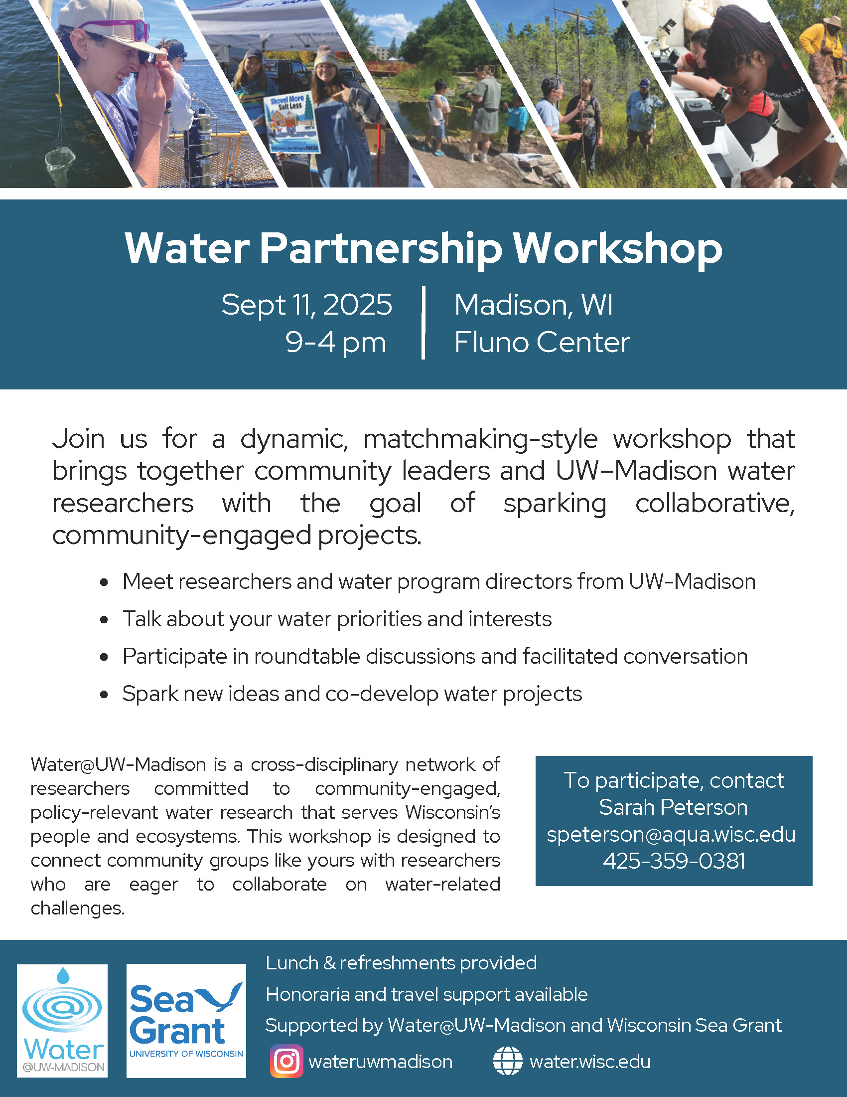 Interested in participating? Reach out to Sarah at speterson@aqua.wisc.edu OR Water@UW-Madison at water@mailplus.wisc.edu