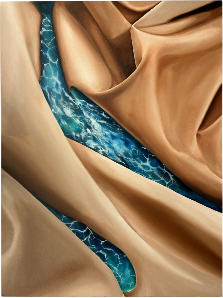 In my painting, I use fabric as a landscape, its folds forming small pools of water to symbolize the state’s inescapable drought. As an oil painter drawn to realism and the fluidity of fabric, I find it a perfect medium to represent land without distraction. My work aims to evoke thought—how can a planet covered in 71% water still leave California parched? This piece is my love letter to my hometown, a visual narrative of urgency and awareness. I create to make people think, feel, and remember—because some stories deserve to make an impact that is unforgettable.