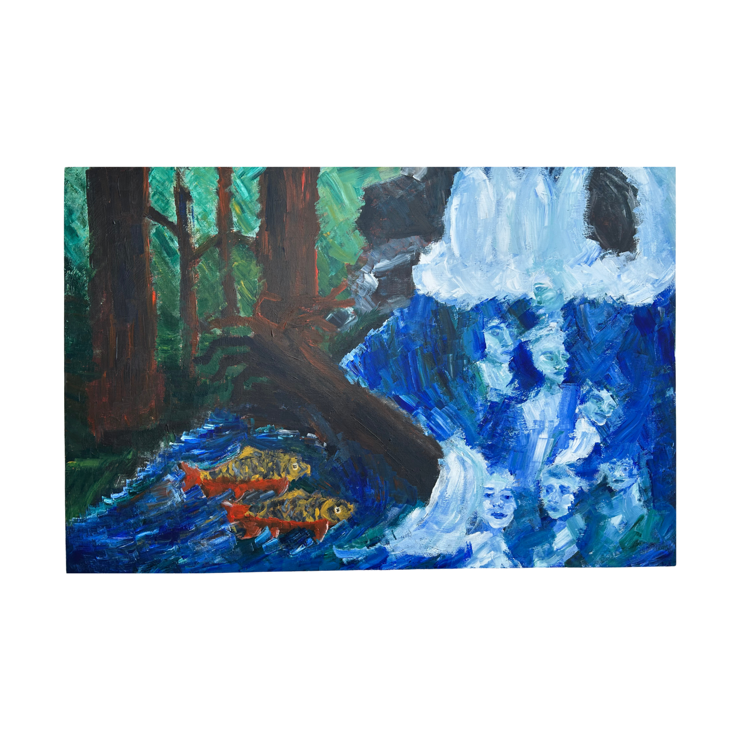 In this piece, I celebrate the high-quality watersheds of Wisconsin, while also warning of their fragility. Individually, each panel represents a microcosm of the beauty and function that appear in Wisconsin ecosystems. My exploration ranges from shaded forest housing cold-water-loving brook trout, to wild rice (manoomin) fields serving as an important source of food and culture to the Ojibwe people, to the magnificence of Lake Superior (gichigami). These ecosystems left intact are resistant and resilient to disturbances that may occur. Within the flowage emerges seven figures, echoing the indigenous idea that decisions made today must consider how they will affect descendants seven generations to come. I paint with impasto brushstrokes to evoke a sense of the energy radiating from water and surrounding life. In juxtaposition with the splendor of these watersheds, is the unstable, fragile structure of the piece, reminiscent of our watersheds if not properly protected.